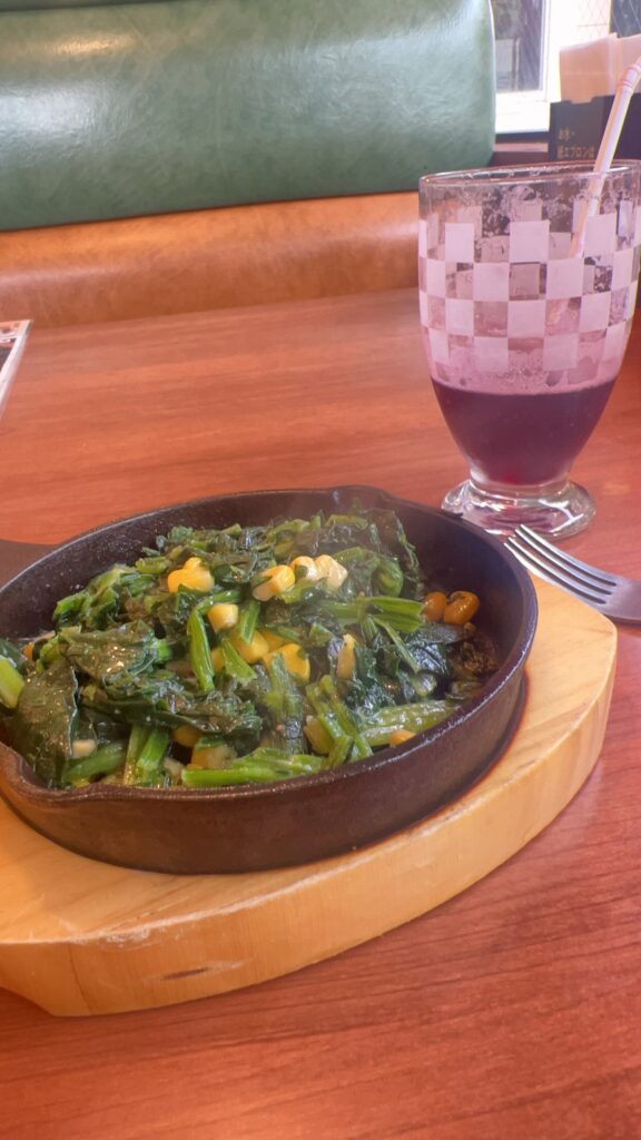 ぶどうジュースを何回も飲んだ🍇 ほうれん草と、ドリンクバーで長居させてもらいました😂
