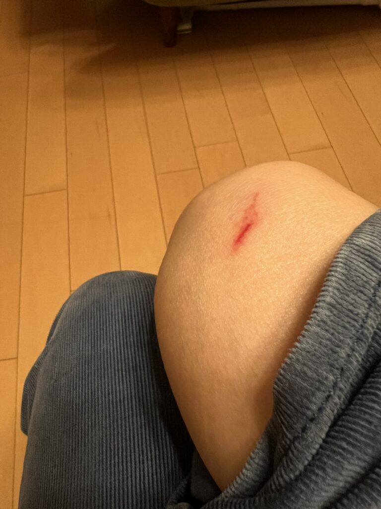 見て!! 血!! 家に帰って見せたら、主人は、なんで?!って、鼻で笑ってた 油断してたら、お風呂はビリビリっと、しみました♨️