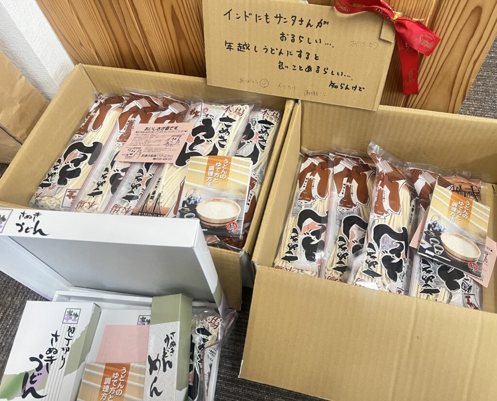 そして今日は、シャラにサンタさんが❣️ 思いがけないクリスマスプレゼントで、みんな大喜びです。美味しいうどん、年末が楽しみです。