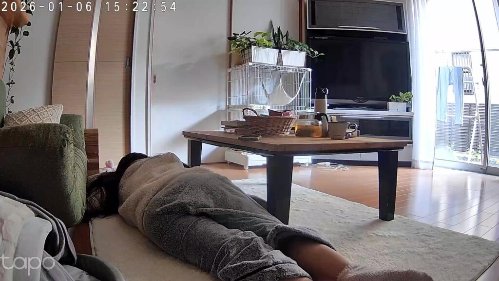 ペットカメラで盗撮してくる長女。ママ寝てるー🤣とか、いちいちメールきて、イライラする🤣笑。 だらしない姿⬇︎ 🤣