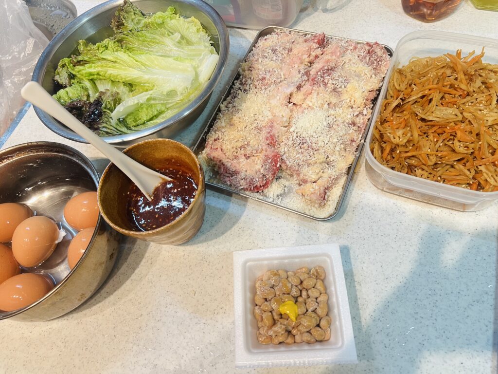 スーパーの値引きシールは絶対チェックする癖が、わたしに染みこんでる笑。半額‼️だったステーキのお肉をカツにして、きんぴらごぼうと、安定の納豆と、ゆで卵。美味しい夕食ができました🙂✨✊