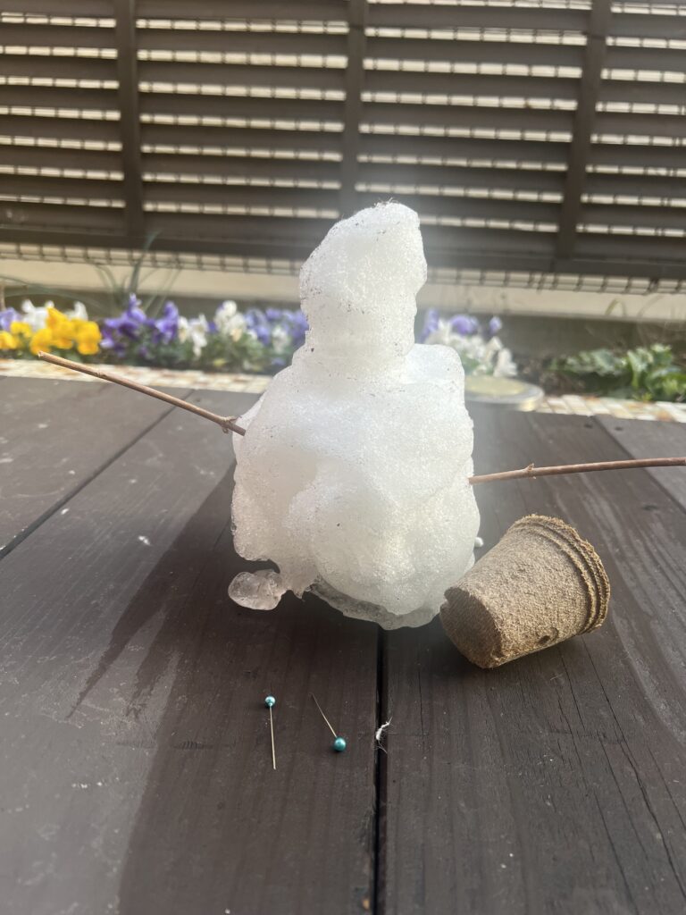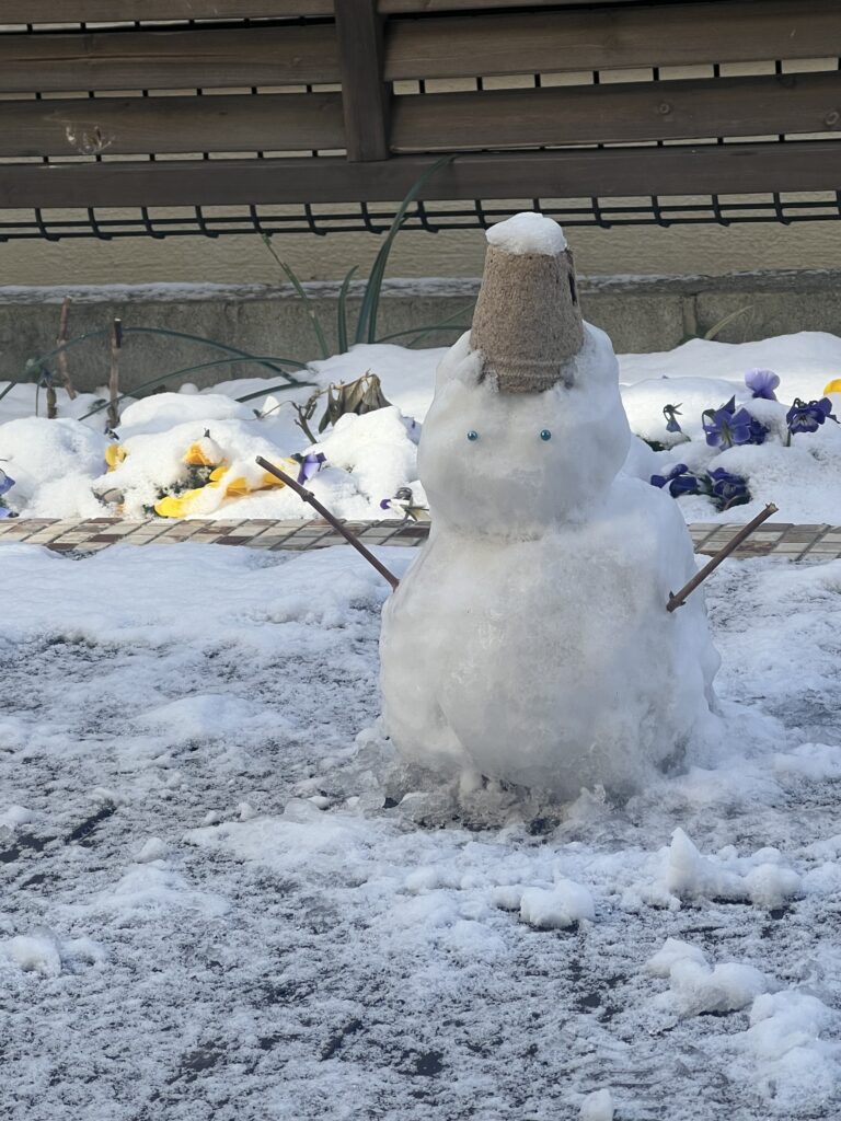 昨夜の雪だるまは、まだ形がしっかりしてた♡