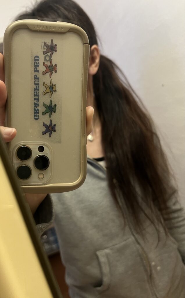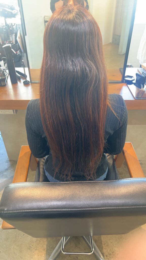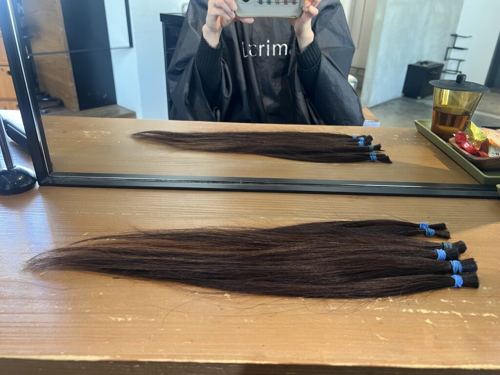 お尻ぎりぎり到達したけど、ここから伸びなくて、ちぎれるし、毛先もスカスカだった。ごくろうさま。ありがとう。35センチ寄付🤲🏻
