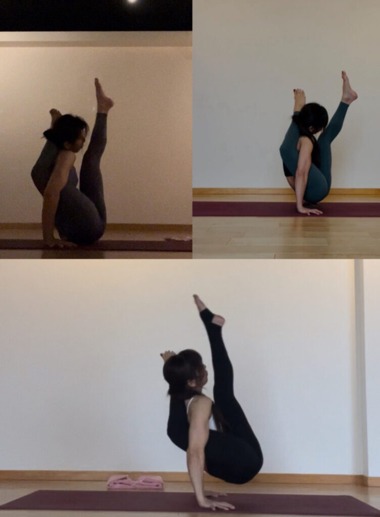 ピンチャや、カランダバは、ちょっと向こうにいこう〜傾きを何とかしよう〜、、、としてみると、こっわ‼️ムリ‼️って、思う😭 無駄な力みで、肩腕がパンパンです😭 こんなにガチガチ、力むことはないと思うし、それで足が自由に動くわけない。今日はカランダバを何回もやりすぎた。もうひと息で自分でパドマが組めそうで、組めない〜。の感じが、わたしをムキにさせました。それ以上やらない、今日はおしまい!!と言われて本日終了。