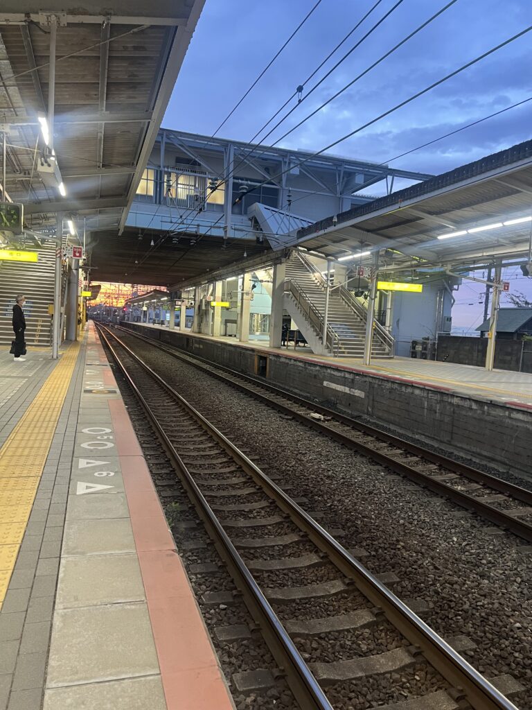4/13 月曜日 久しぶりの電車🚃 5:00すぎ、駅におろしてもらって、綺麗な朝焼けを見ながら電車を待ちました。