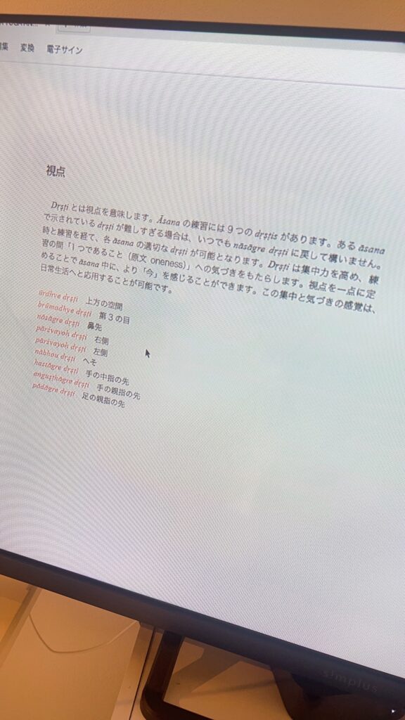 そんなアーサナ欲とも言える感情のまんま、午後は『ヨガを深めるコース』第二回目に参加させてもらいました。エゴにまみれた私は、あらためて基礎だったり、大切なことに触れた時間。